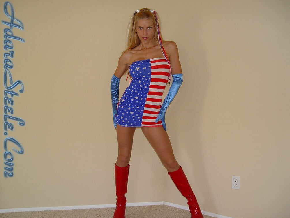 80 images of Adara Steele looking fine as heck in red boots and a flag style one piece